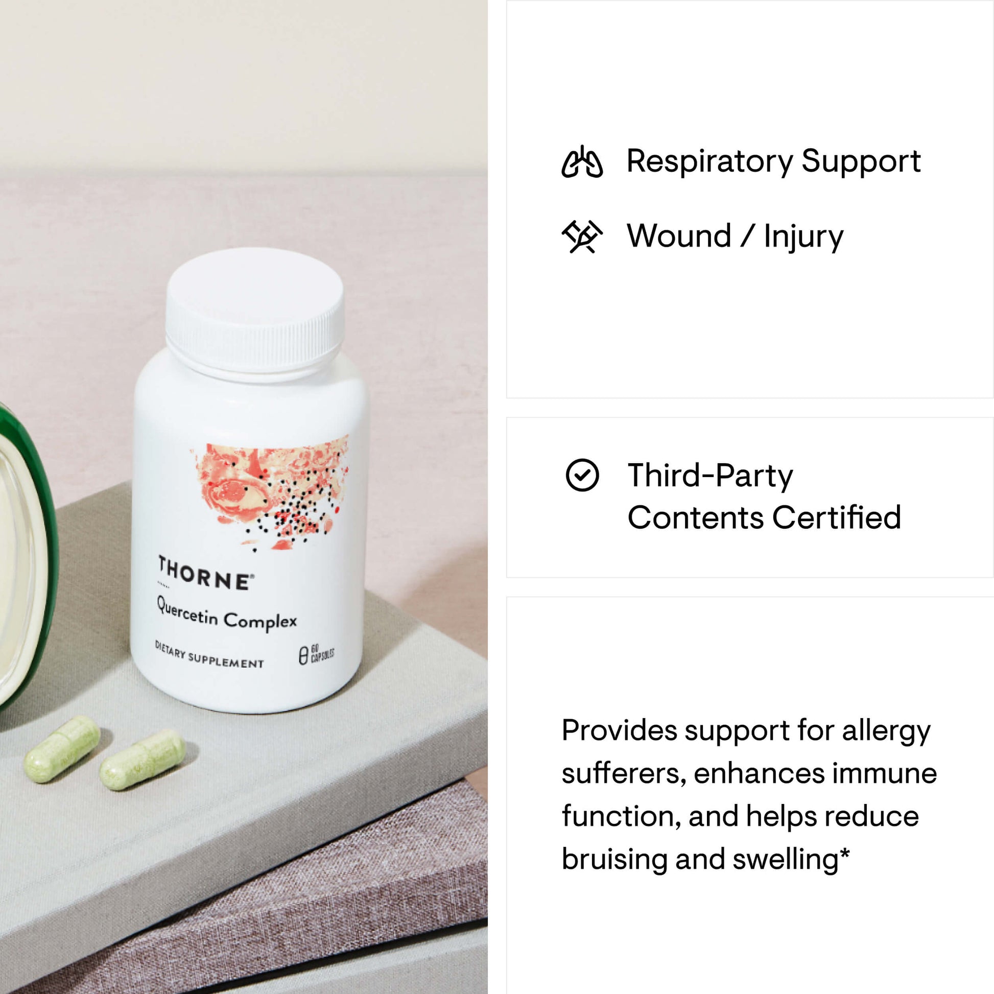 Quercetin, one of the two primary ingredients in Thorne's Quercetin Complex, stabilizes the body's mast cells, which store and release histamine, so it supports individuals who suffer from allergies.